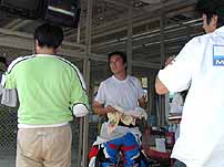 世界の金谷氏も心配で我々の ピットに来てくれました。しかし! 「残念やったな〜」って、大笑いして 自分のピットへ帰って行きました。 |